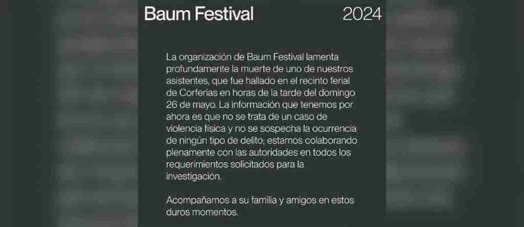 Este fin de semana, el festival Baum en Bogotá se vio ensombrecido por la trágica muerte de Carlos David Ruiz Molina, un joven de 25 años que asistía al evento de música electrónica. Al encontrar su cuerpo sin vida, las autoridades comenzaron una investigación para esclarecer las circunstancias del fallecimiento. Tanto Corferias, el lugar del evento, como los organizadores del festival expresaron sus condolencias a la familia de Ruiz. En un comunicado, el festival Baum señaló que no se sospecha de violencia física ni de ningún delito en este caso.