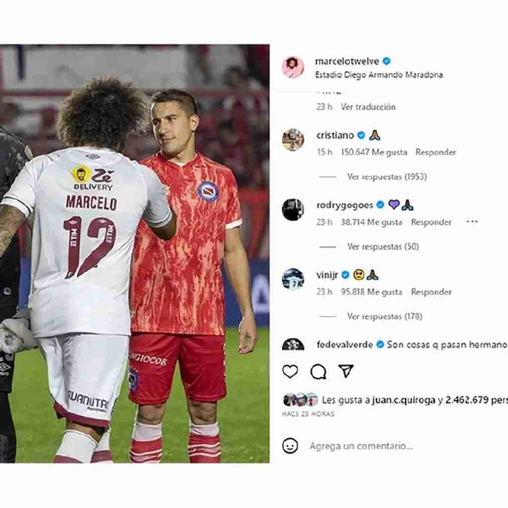Tras la publicación se acumularon más de 34 mil comentarios, destacándose entre ellos reconocidos jugadores internacionales, quienes también se sumaron a expresar su apoyo. Tres de los excompañeros de Marcelo en el Real Madrid, Cristiano Ronaldo, Vinicius Jr. y Rodrygo Goes, optaron por compartir una imagen de plegaria como forma de apoyo.
