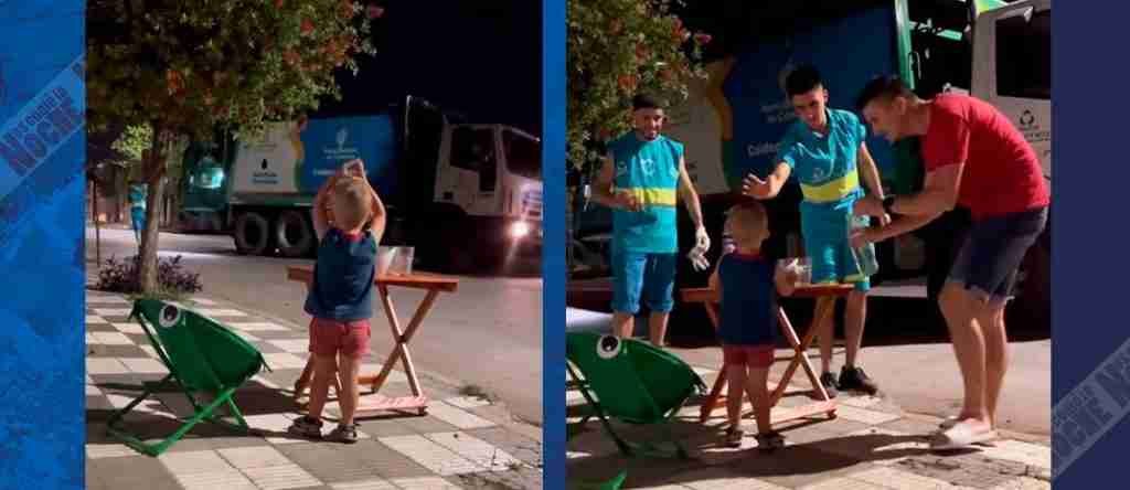 Lucas, el padre del menor, decidió retribuir la amabilidad de los recolectores esperando con su hijo en una noche calurosa, cuando las temperaturas rodeaban los 40 grados, con gaseosas y agua fría para ellos.