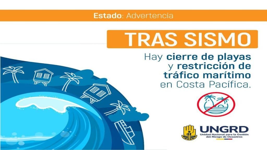 Sin embargo, el examen incesante del océano trazó una imagen menos sombría. Aunque persisten corrientes peligrosas y posibles olas, el riesgo de un golpe devastador se redujo lo suficiente para bajar la alerta. La Unidad Nacional para la Gestión del Riesgo de Desastres (UNGRD) y la Dirección General Marítima (Dimar) mantuvieron un estado de advertencia: playas cerradas, malecones desiertos, actividades marítimas suspendidas y puertos con restricciones estrictas. “Hay estado de advertencia para los departamentos de Cauca, Valle del Cauca, Nariño y Chocó”, confirmó la UNGRD en su boletín oficial.