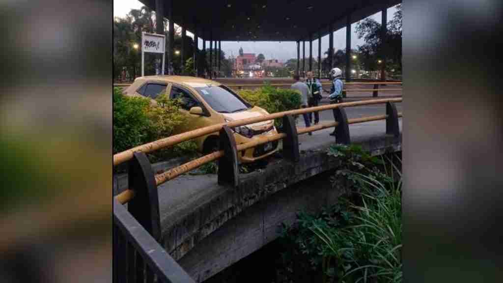 Un taxi sin frenos se estrelló contra las barandas del Puente del Parque del Artista en Itagüí