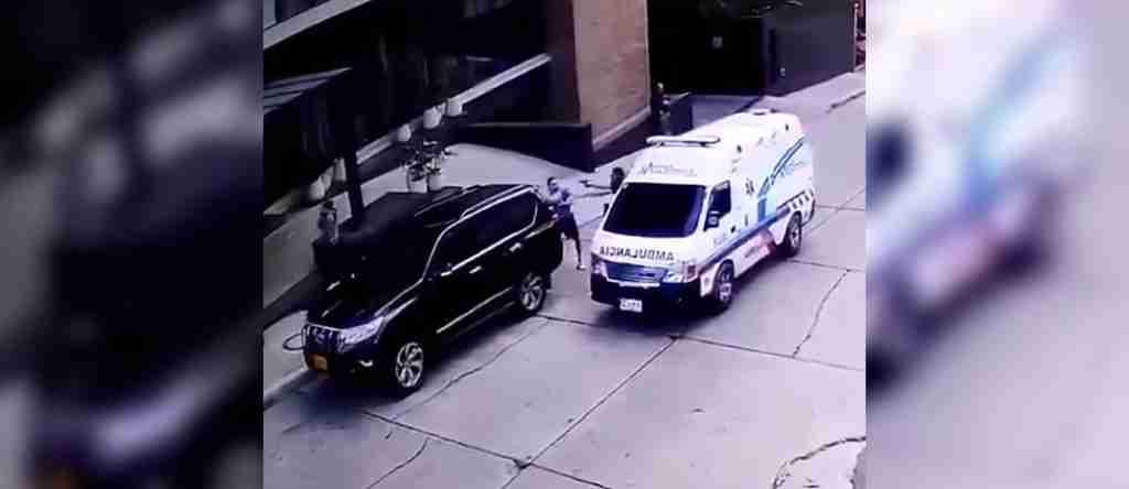 El intento de secuestro quedó grabado en video, en el cual se ve como varios delincuentes que se movilizan en dos carros, uno de ellos una ambulancia, cogen a la fuerza un empresario de aproximadamente 33 años que se acababa de bajar de una lujosa camioneta y lo suben al vehículo de atención médica para emprender la huida.
