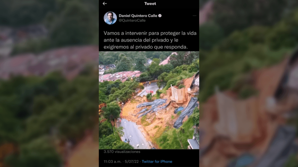 Daniel Quintero frente a emergencia en Rodeo Alto.