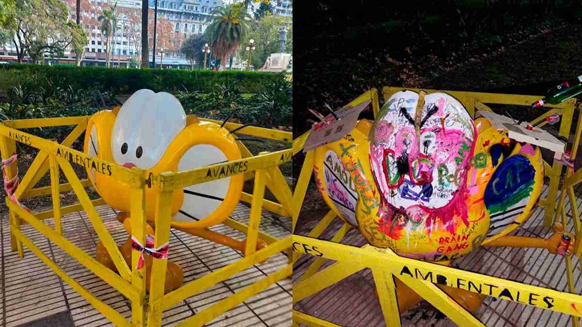 Esta es la única estatua del Paseo de la Historieta que ha sido vandalizada desde que se inauguró en 2012. Allí también se encuentran Mafalda, Susanita y Manolito, de Quino, y otras 14 que, sin detractores, siguen de pie.