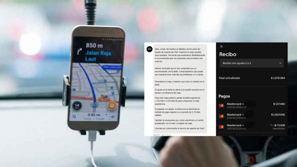 El afectado, Johan Coy, relató que la aplicación le indicó una tarifa cercana a los 127 mil pesos, precio habitual para ese trayecto. Sin embargo, al finalizar el recorrido fue debitada de su tarjeta de crédito una suma de 1.624.942 pesos, lo que representa un aumento de aproximadamente el 1.275 por ciento con respecto al monto inicial. Al revisar la aplicación, Coy encontró que el viaje aparecía cobrado por esa cifra elevadísima. Cuando contactó el soporte técnico, una asesora @ identificada como Melida M explicó que la carrera costó inicialmente hasta 1.752.000 pesos y que ese monto había sido “ajustado” a 1.678.464 pesos, otorgando un reembolso muy limitado de 73.938 pesos.