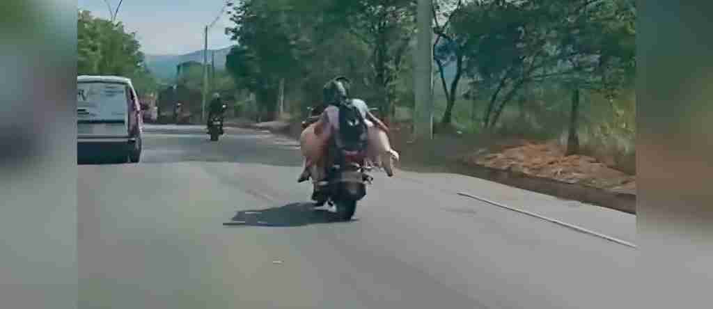 Un video ciudadano captó el curioso momento en el que motociclistas transportaban a un gran marrano por las calles de Bucaramanga cerca al parque Industrial de la ciudad.