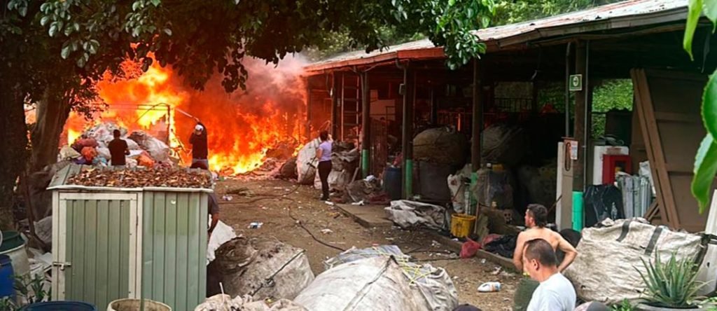 Los bomberos de Medellín trabajan para apagar un voraz incendio estructural que se presenta en el sector Palenque, en el corregimiento de San Cristóbal, el cual queda muy cerca a un jardín de niños.